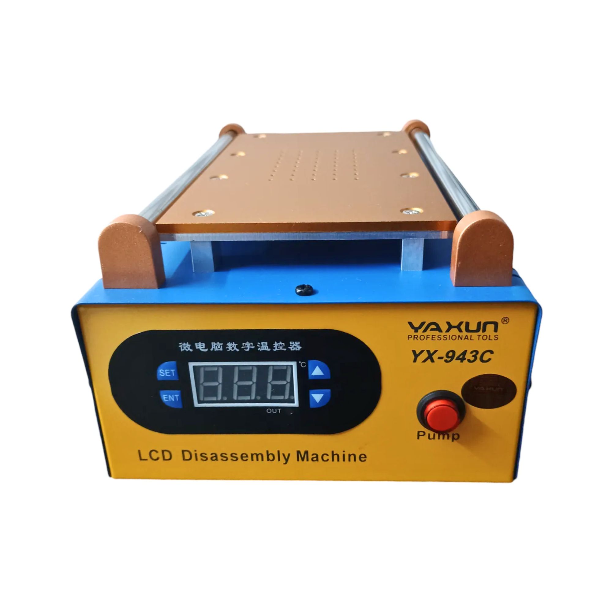 Máquina desenvolvida para manutenção de smartphones, utilizada na separação de telas LCD, retirada de vidro quebrado e remoção de adesivo OCA. Possui placa aquecida com controle de temperatura e sistema de vácuo integrado, garantindo que a tela fique fixa durante o processo, proporcionando precisão e segurança no reparo.